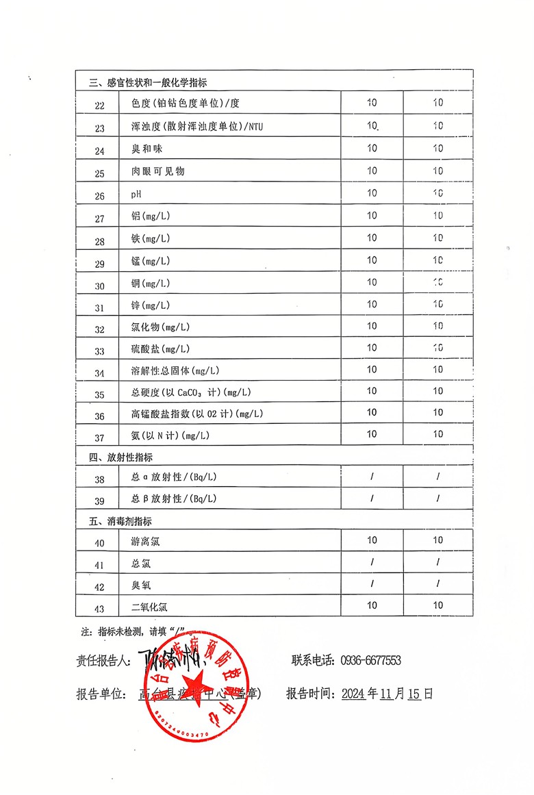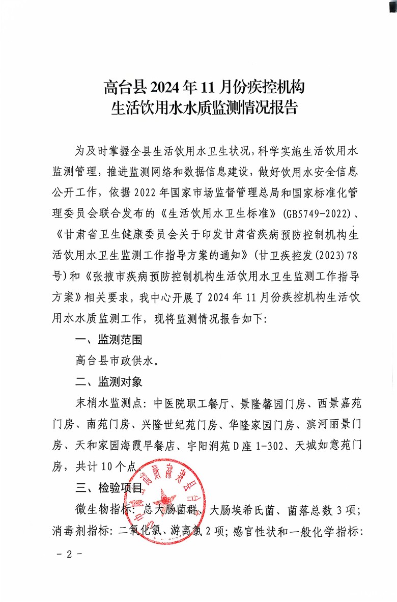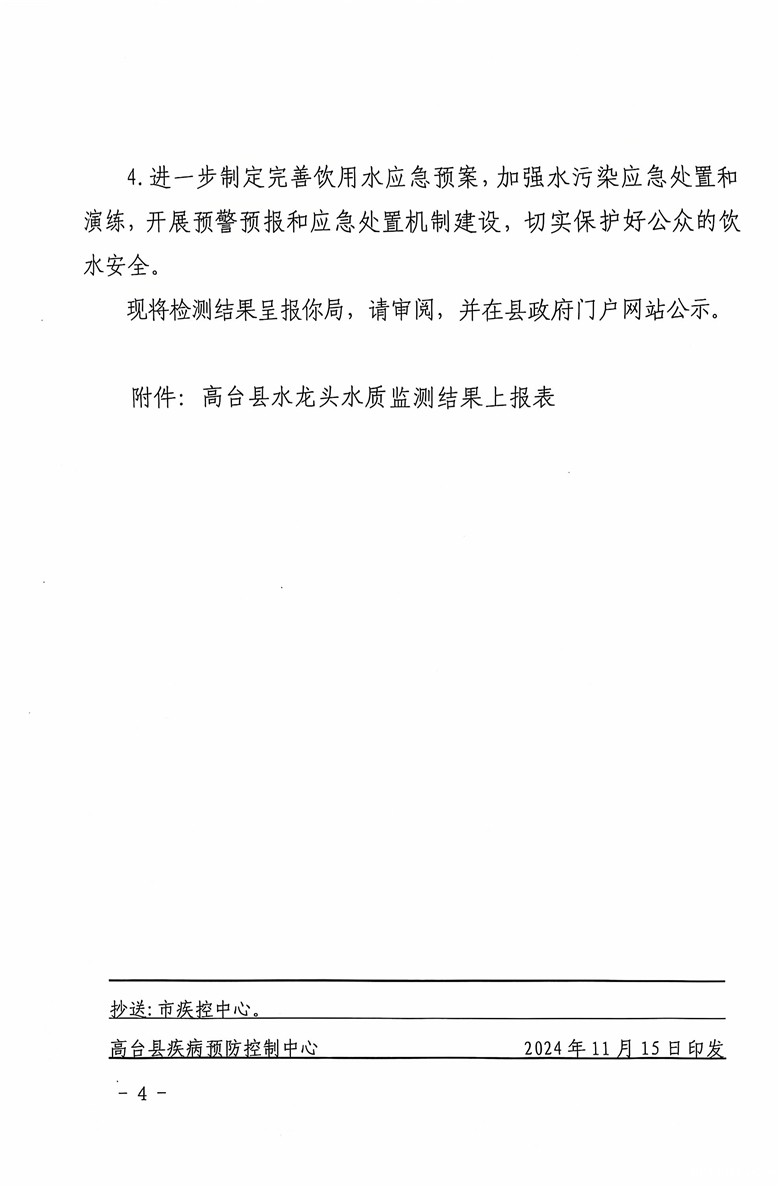 关于报送taptap点点2024年11月份疾控机构生活饮用水水质监测情况报告的报告