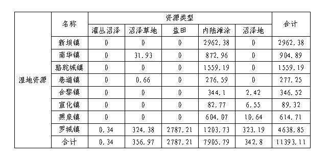 依据自然资源部办公厅印发的《自然资源确权登记操作指南(试行)》中湿地资源分类方法,根据我县第三次全国国土调查初始成果数据,taptap点点湿地总面积为11393.11公顷,其中:灌丛沼泽0.34公顷;沼泽草地356.97公顷;盐田2787.21公顷;内陆滩涂7905.79公顷;沼泽地342.8公顷,除城关镇外均有分布,详见表9。