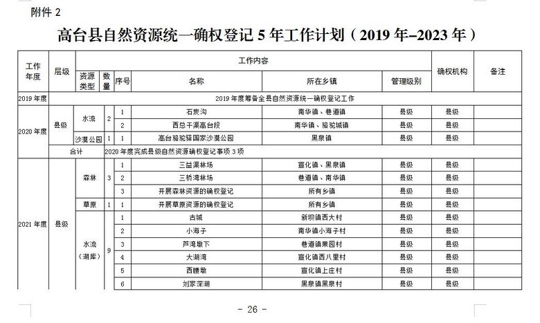 (三)2023年以后,根据部、省及市统一安排启动非重点区域自然资源统一确权登记工作,逐步实现全县自然资源统一确权登记全覆盖
