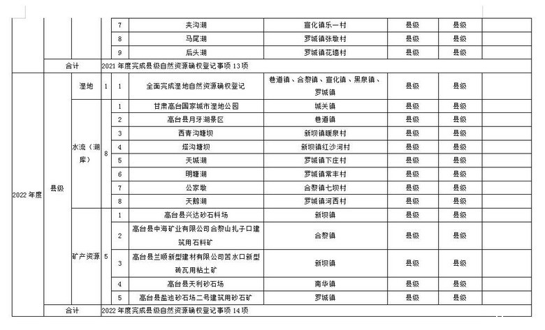 按照省自然资源厅、市自然资源局的统一部署,县自然资源局会同县水务局、湿地局、林业和草原局和市生态环境局高台分局配合省自然资源厅、市自然资源局开展统一确权登记工作,及时配合完成自然资源登记单元界线核实、自然资源自然状况和权属状况核实以及其他工作任务,按时提交工作成果。