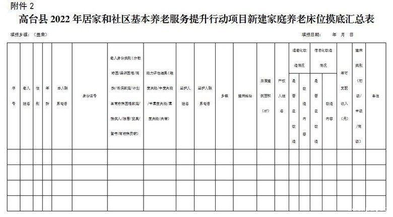 2.taptap点点2022年居家和社区基本养老服务提升行动项目新建家庭养老床位摸底汇总表