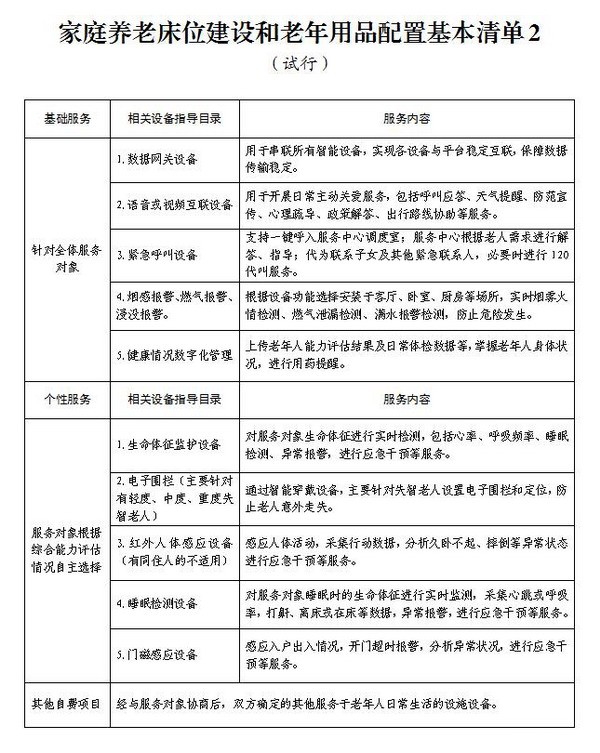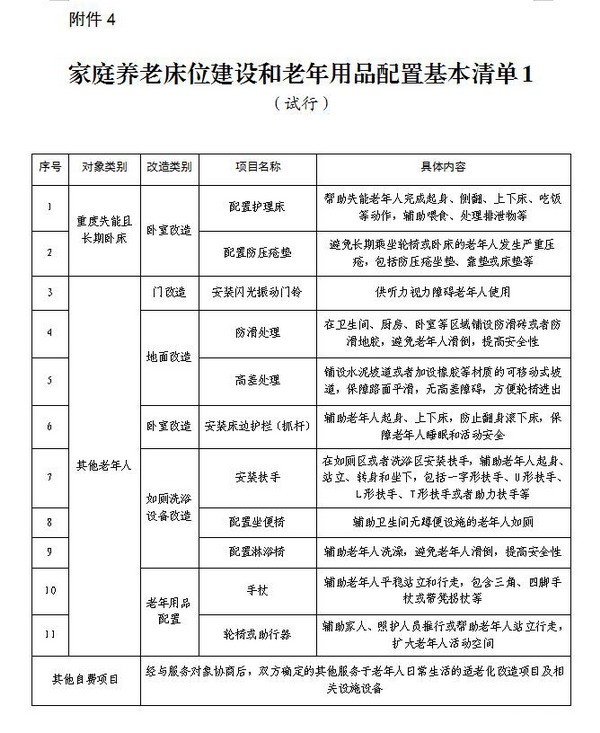 4.家庭养老床位建设和老年用品配置基本清单1.2