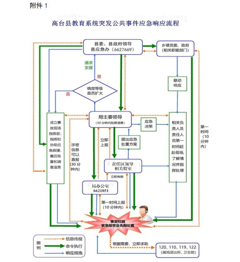 1.县教育局和各级各类学校、教育培训机构应根据应急预案的要求,定期检查本部门、学校应急人员、设施、装备等落实情况。